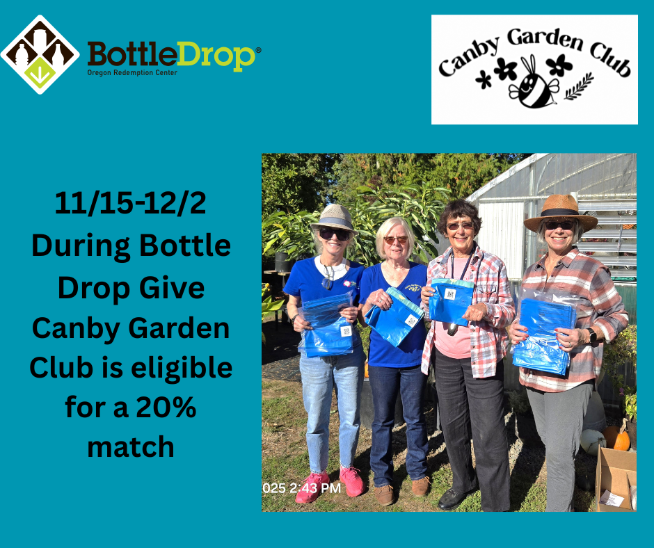The Canby Garden Club has partnered with the Oregon Bottle Drop to raise money for our local garden programs.